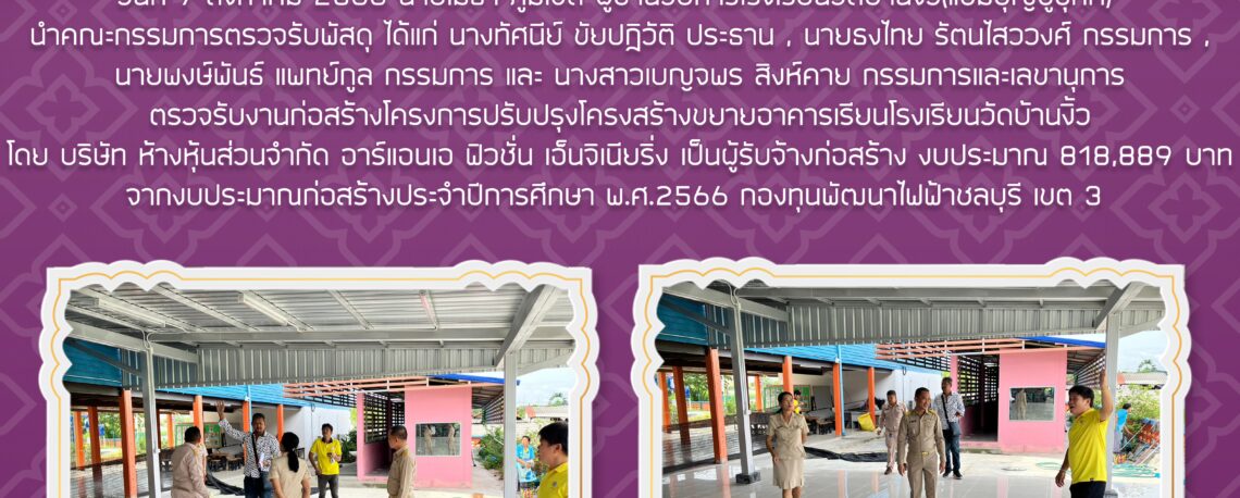 จดหมายข่าวประชาสัมพันธ์ ตรวจรับงานก่อสร้างโครงการปรับปรุงโครงสร้างขยายอาคารเรียนโรงเรียนวัดบ้านงิ้ว
