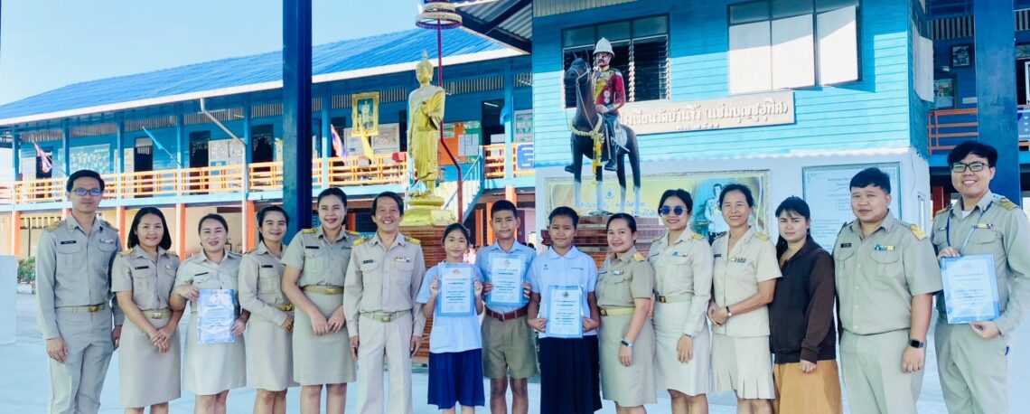 มอบเกียรติบัตรและกล่าวแสดงความยินดีให้แก่ตัวแทนนักเรียนโรงเรียนวัดบ้านงิ้ว(แช่มบุญชูอุทิศ) เนื่องในโอกาสได้ส่งนักเรียนเข้าร่วมการแข่งขันตอบคำถามสารานุกรมไทยสำหรับเยาชนฯ ระดับจังหวัด ครั้งที่ 27
