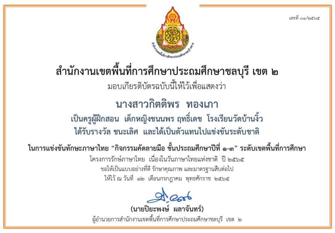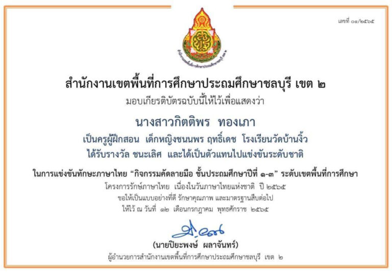 โรงเรียนวัดบ้านงิ้ว สพป.ชลบุรี เขต 2