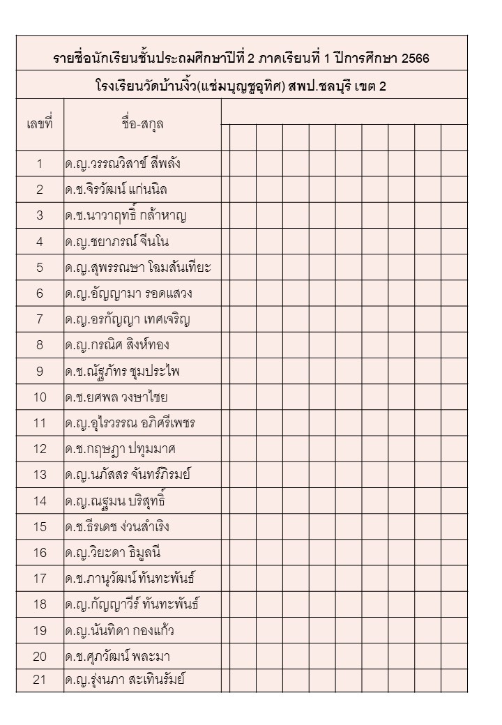 ดาวน์โหลดรายชื่อชั้น ป.2 ภาคเรียนที่ 1/2566