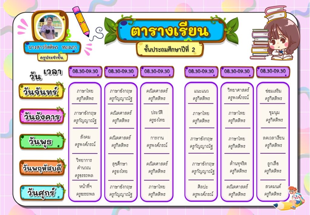 ตารางเรียนชั้น ป.2 ภาคเรียนที่ 1/2566