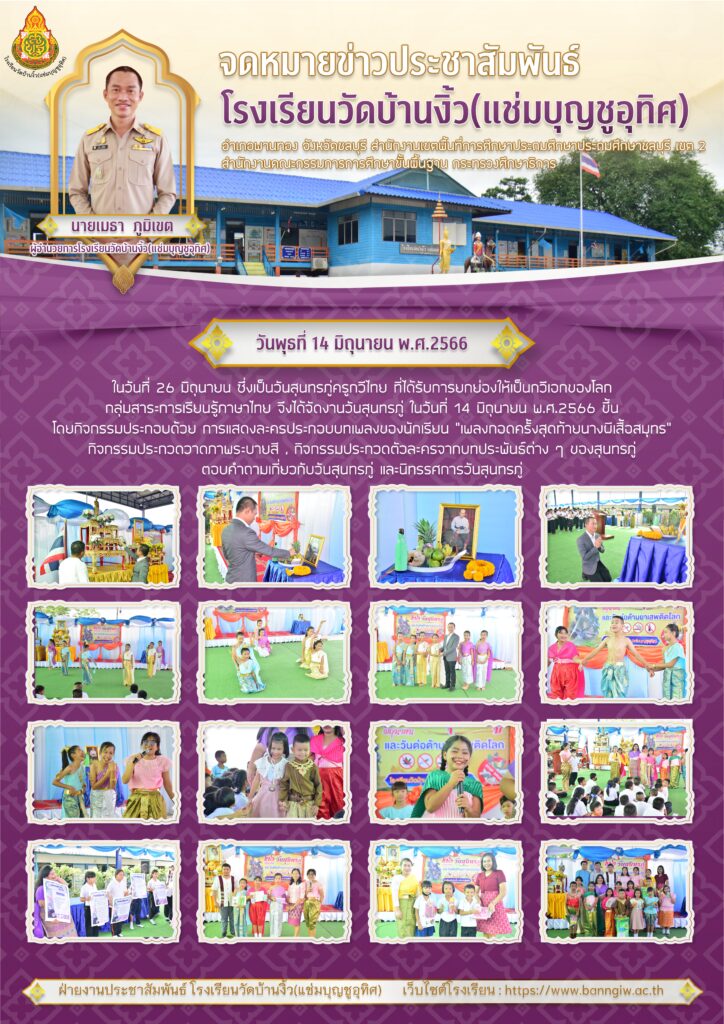 จดหมายข่าวประชาสัมพันธ์ กิจกรรมวันสุนทรภู่ ปีการศึกษา 2566 18 มิ.ย.,2023 ฝ่ายงานประชาสัมพันธ์ โรงเรียนวัดบ้านงิ้ว(แช่มบุญชูอุทิศ)ใส่ความเห็น Post Views: 123